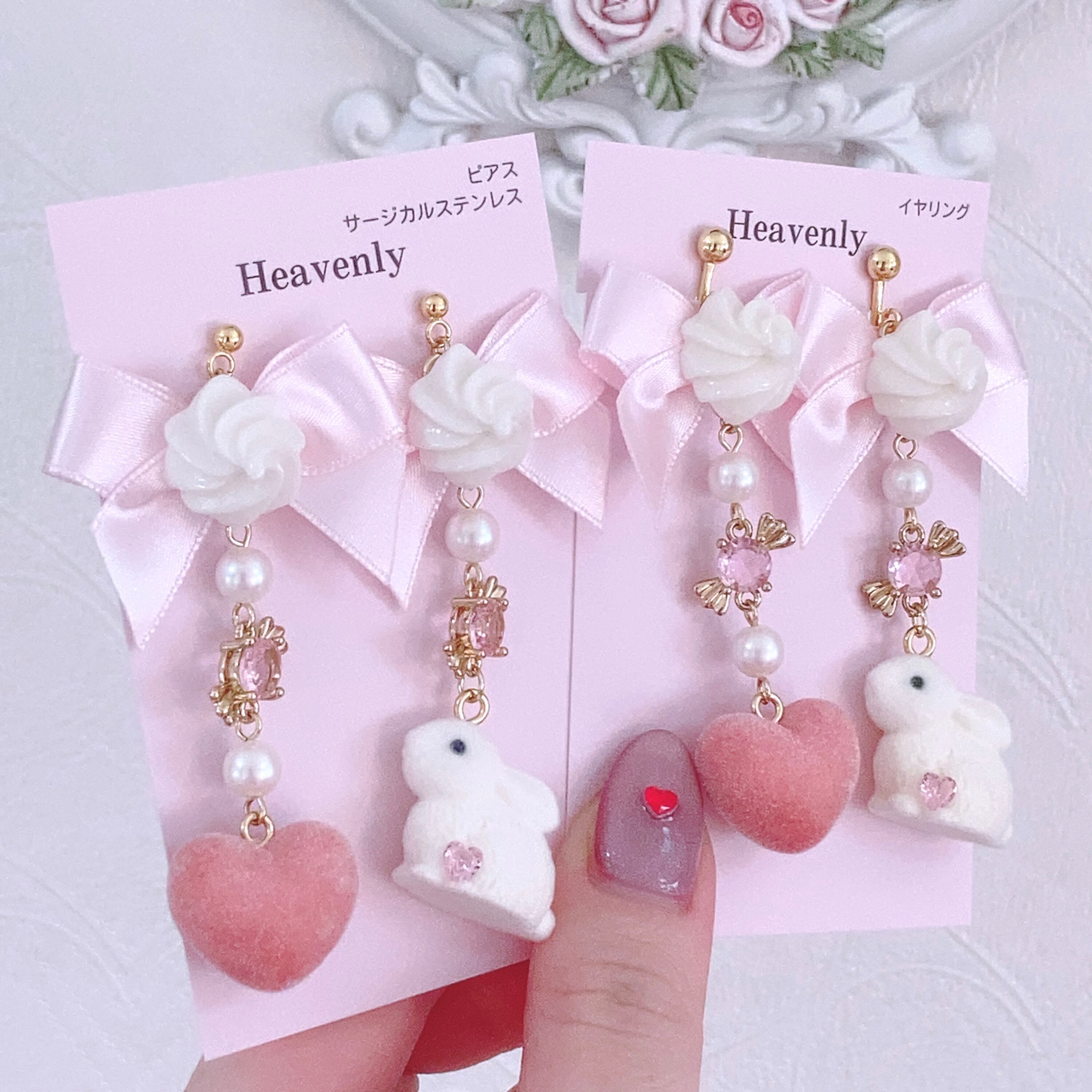 ホイップクリームとうさぎさんのピアス/イヤリング キャンディ ハート バレンタイン